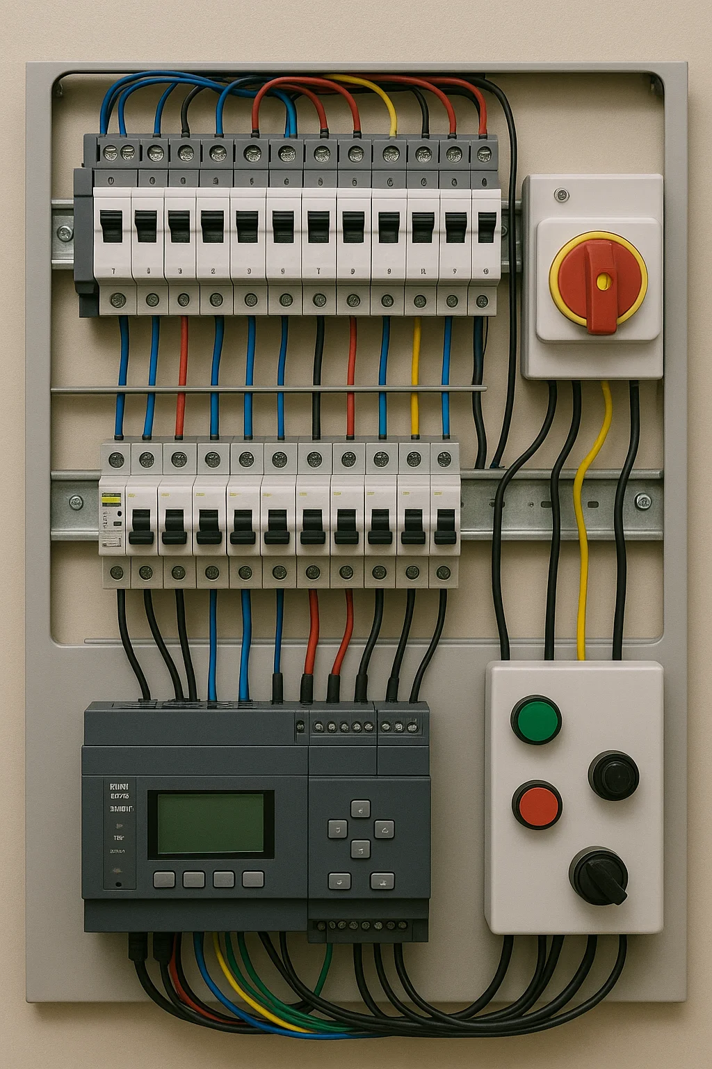طراحی و اجرای اتوماسیون و مدارهای الکتریکی شامل برنامهریزی، پیادهسازی و کنترل سیستمهای خودکار صنعتی و الکترونیکی است. در این فرآیند، مهندسان با استفاده از PLC، سنسورها، عملگرها و تجهیزات کنترل الکتریکی، سیستمهایی را طراحی میکنند که بتوانند فرآیندهای تولید، مونتاژ یا سایر عملیات صنعتی را بهصورت خودکار و با دقت بالا انجام دهند. علاوه بر برنامهریزی نرمافزاری، طراحی مدارهای الکتریکی مناسب برای تأمین انرژی، حفاظت و ارتباط بین اجزای سیستم اهمیت دارد. اجرای موفق این پروژهها موجب افزایش بهرهوری، کاهش خطاهای انسانی، بهینهسازی مصرف انرژی و ارتقای ایمنی در محیطهای صنعتی میشود و امکان کنترل دقیق و پایش لحظهای فرآیندها را فراهم میکند.